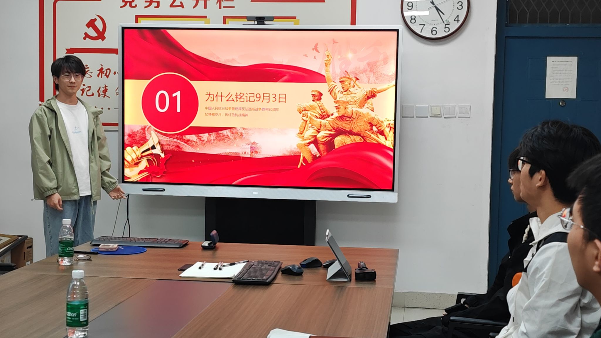 张婷带领全体党员重温历史。她生动讲述了九一八事变的经过、中国人民抗日战争的艰辛历程以及无数先烈为国家独立和民族解放做出的卓越贡献。她表示,每一段历史都值得铭记,每一位先烈都值得缅怀。作为新时代青年党员,大家要从历史中汲取力量,传承先烈精神。