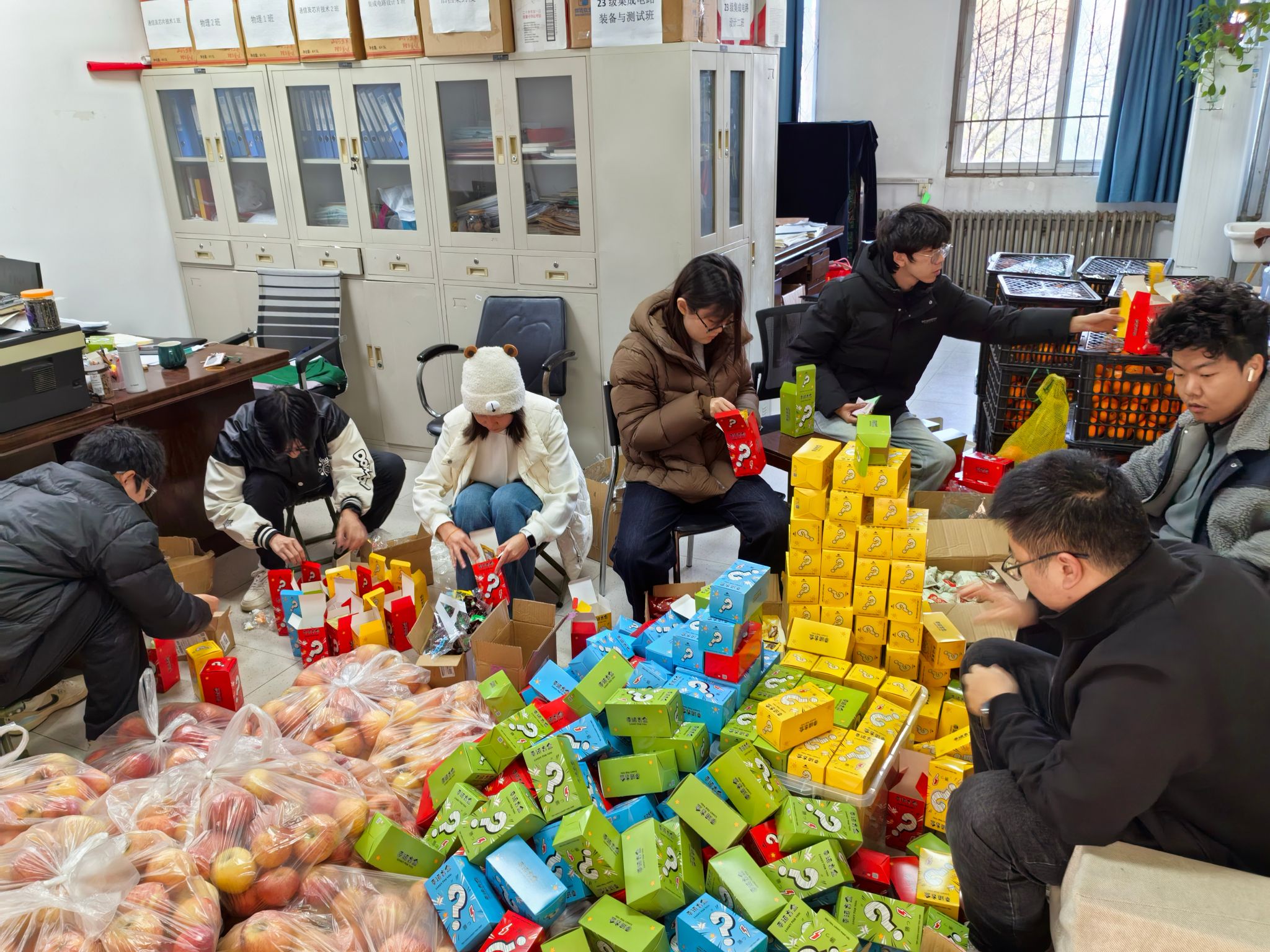 随后,刘寒冰、张婷亲手将学院精心准备的考研祝福礼包递到每一位学子手中。礼包内不仅有象征“平安上岸”的红苹果、寓意“心想事‘橙’”的鲜橙,还有趣味零食与创意玩具组成的惊喜盲盒,每一份礼包都附有手写签名与暖心寄语,承载着对学子的殷切期盼。同学们纷纷表示将带着这份温暖全力以赴,不负韶华与期待。活动现场氛围温馨热烈。
