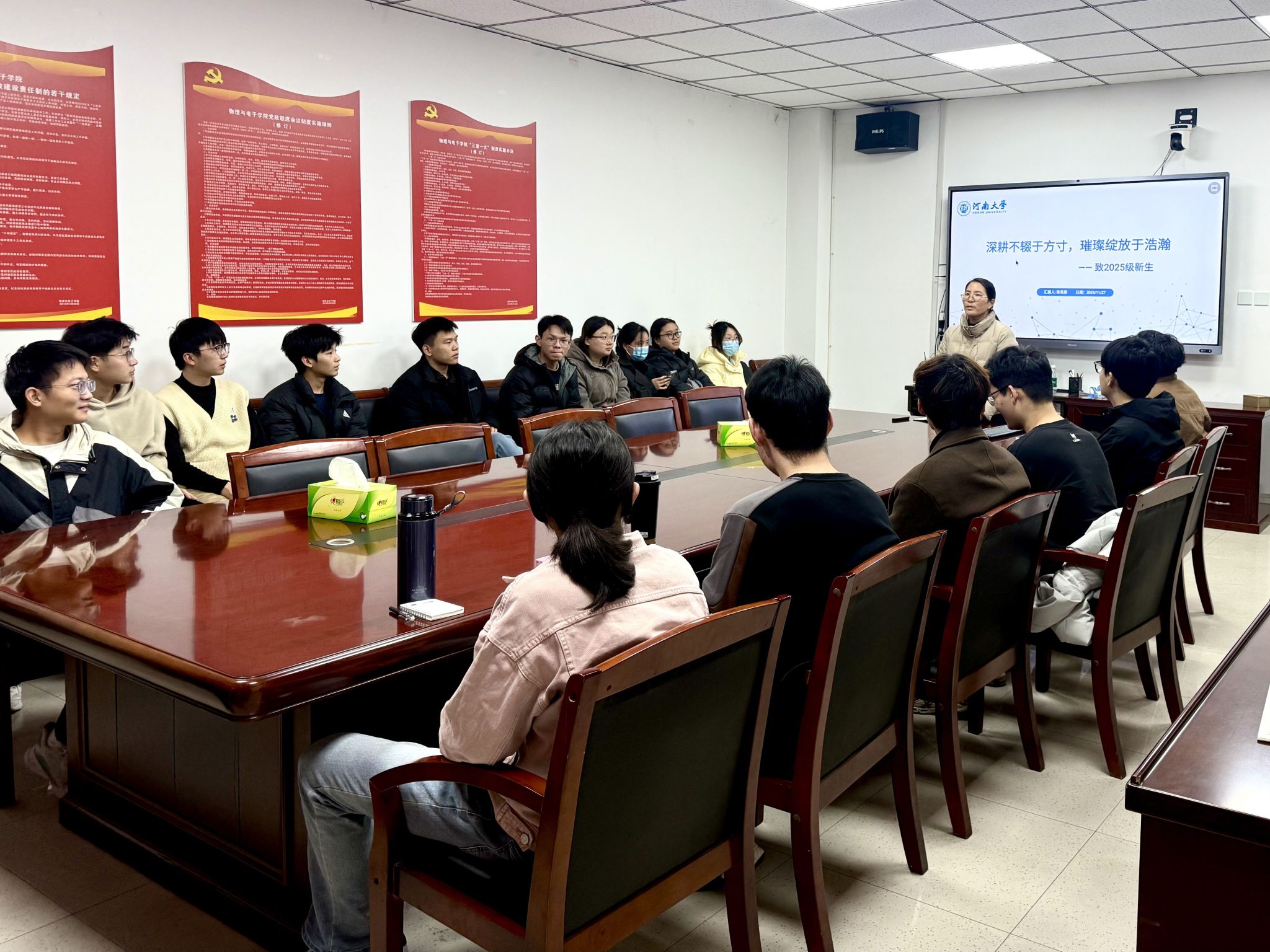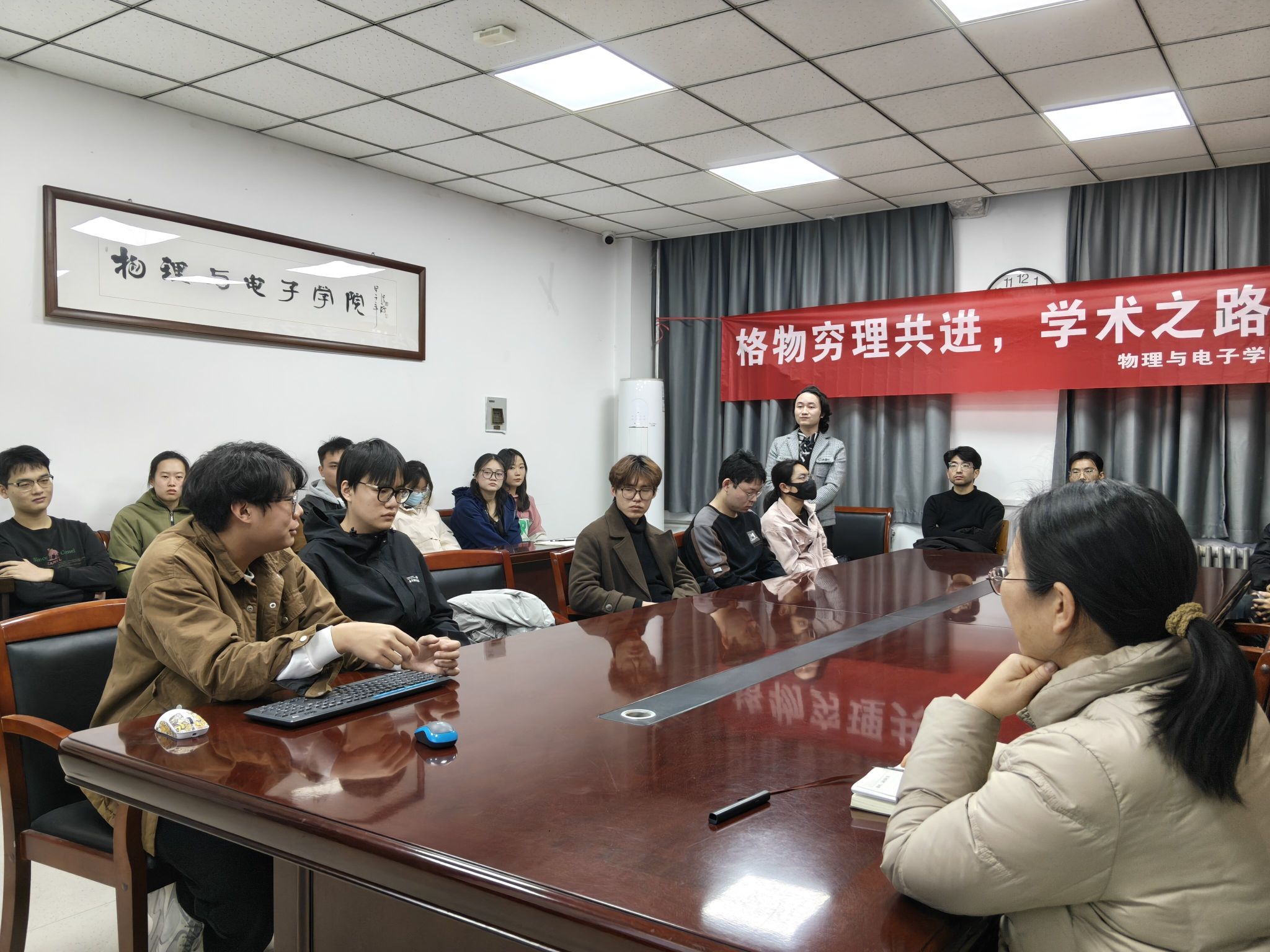 为助力2025级研究生快速融入科研节奏、精准锚定学术方向、筑牢科研起步根基,11月27日下午,学院于物理楼A311举办2025年“学术之路”系列讲座——“格物穷理共进,学术之路同行”第二期学术分享交流会,邀请国家奖学金获得者陈禹豪做经验分享,研究生辅导员王翠苹主持会议。