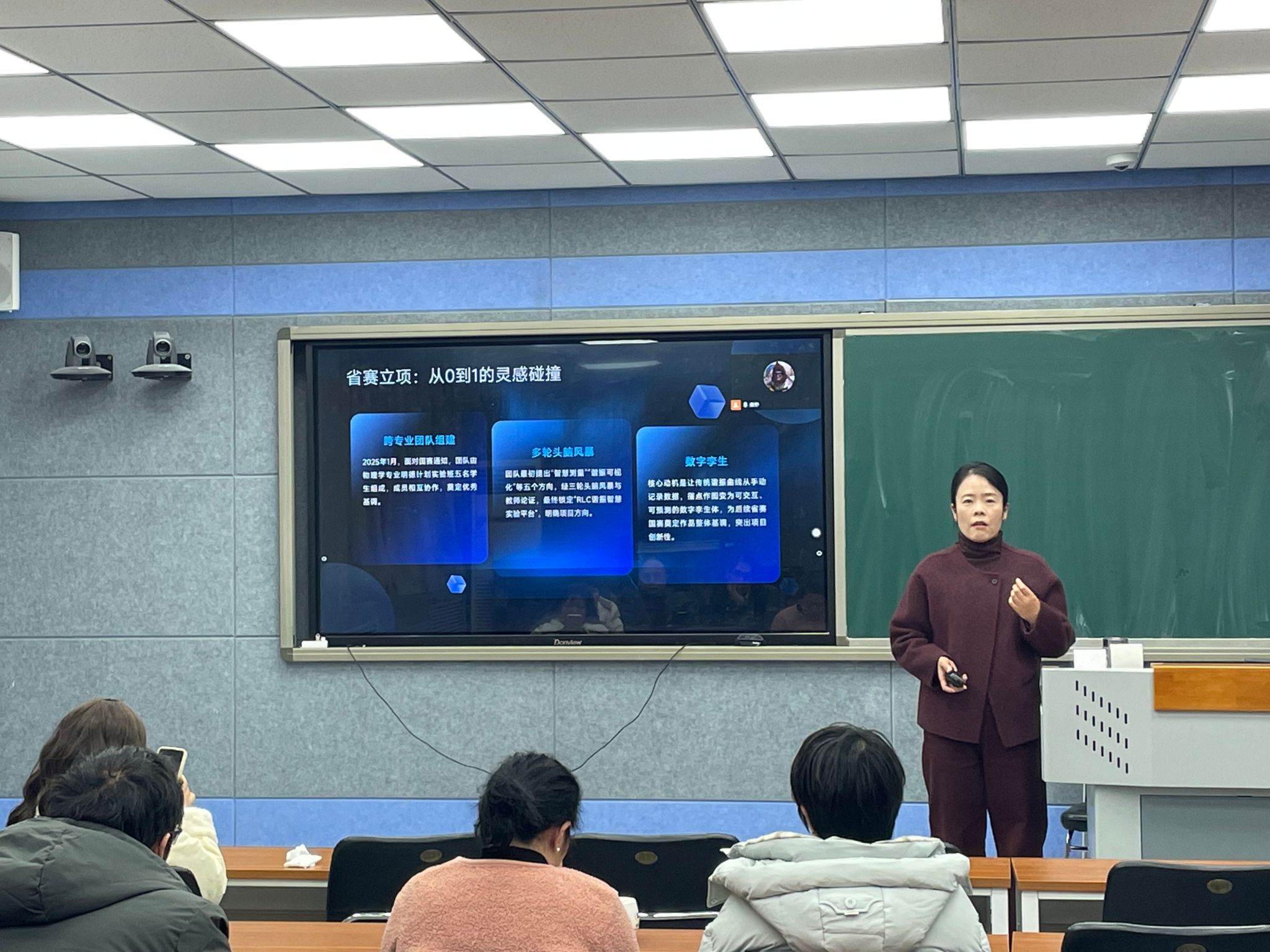 魏凌以参加全国大学生物理实验竞赛(AI+物理实验)的实践经验为切入点,作《AI+物理实验国赛二等奖复盘与展望》的报告。她对获奖项目的设计思路、技术路线及教学组织过程进行了全面回顾,总结了人工智能技术在实验教学与竞赛训练中的优势与不足,并对未来“AI+物理实验”教学模式的优化与推广进行了前瞻性展望。
