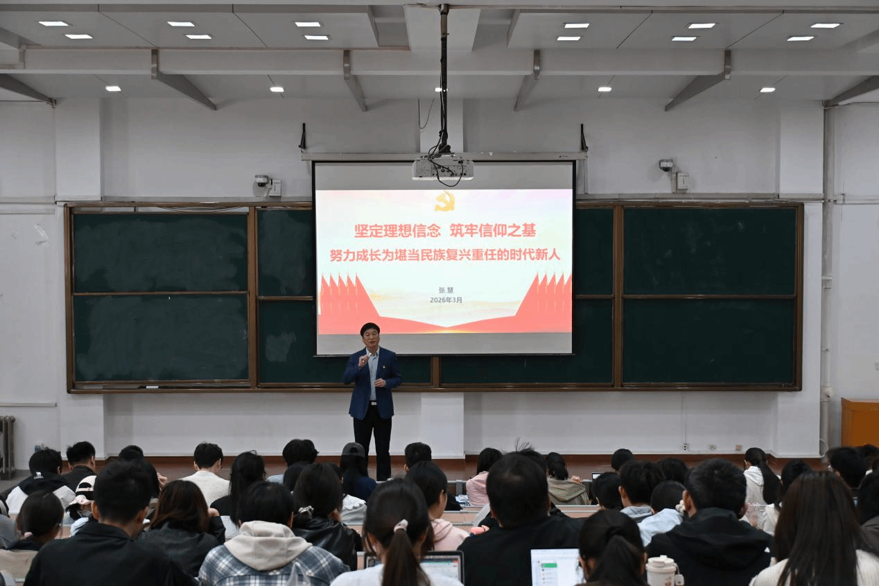 学院党委书记张慧以《坚定理想信念 筑牢信仰之基 努力成长为堪当民族复兴重任的时代新人》为题,围绕习近平新时代中国特色社会主义思想,结合青年成长与时代要求,深刻阐释理想信念对入党积极分子的重要意义,带领学员学习领会习近平总书记关于青年工作的系列重要讲话精神。他结合学院学科特色,勉励广大学子将个人理想融入国家发展大局,既要筑牢理论根基、坚定政治立场,以党员标准严格要求自己,又要深耕专业学习、锤炼过硬本领,在实践创新中勇攀高峰,以实际行动践行初心使命,努力成长为堪当民族复兴重任的时代新人,为强国建设和民族复兴贡献青年力量。