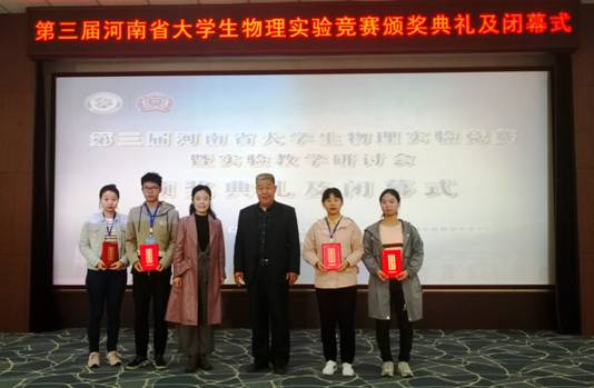 据悉,河南省大学生物理实验竞赛由河南省物理学会主办,旨在促进大学生对物理实验的重视、激发大学生创新意识、促进师生交流、培养学生攻坚克难、积极创新的能力,竞赛共分为基础实验、综合实验和创新作品设计三部分,按照一定比例计入总成绩。2019年竞赛有来自全省19所高校的33支队伍132名学生与70余名教师参加。