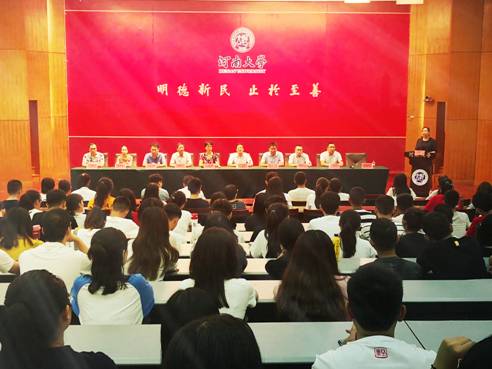 的历史和现状,帮助同学们从师资队伍、科研平台、人才培养体系等各方面对学院情况有更加深入的了解。最后,王院长对本届新生表达了殷切的期盼,希望大家能够发扬“百折不挠,自强不息”的河大精神、秉承“复性正心、格物穷理”的院训,培养扎实的专业基础、卓越的创新能力、宽广的国际视野、批判性思维意识,成为优秀的栋梁之才。