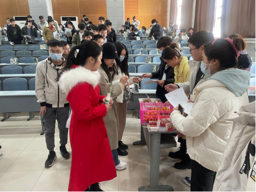 党委副书记刘寒冰、毕业班辅导员张婧杰为学院348名考研学子送上全院师生温暖的问候与祝福和精美的礼品。